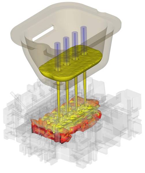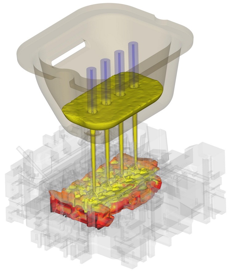 Die außergewöhnliche Genauigkeit von FLOW-3D CAST sowie die realstische Modellierung der Bewegung der Gießpfanne ermöglichen zuverlässige Aussagen und Analysen über das Formfüllverhalten, selbst komplexester Geometrien. Damit kann die Gefahr von Gussfehlern (Oxidbildung, Lufteinschlüsse, Kaltlauf, Oberflächenfehler, Einschlüsse, ...) sowie Schäden an der Kokille exakt aufgezeigt und somit im späteren Gießprozess vermieden werden. Spezielle Kriteriumsfunktion helfen zusätzlich bei der optimalen Auslegung der Anschnitt- und Speisertechnik.